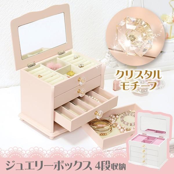 ジュエリーボックス クリスタル 木製 大容量 可愛い 姫系 ネックレス 鏡付き アクセサリー収納 アクセサリーケース 宝石箱 4段 白 ピンク Q5777 生活空間サイト 家具本舗 通販 Yahoo ショッピング